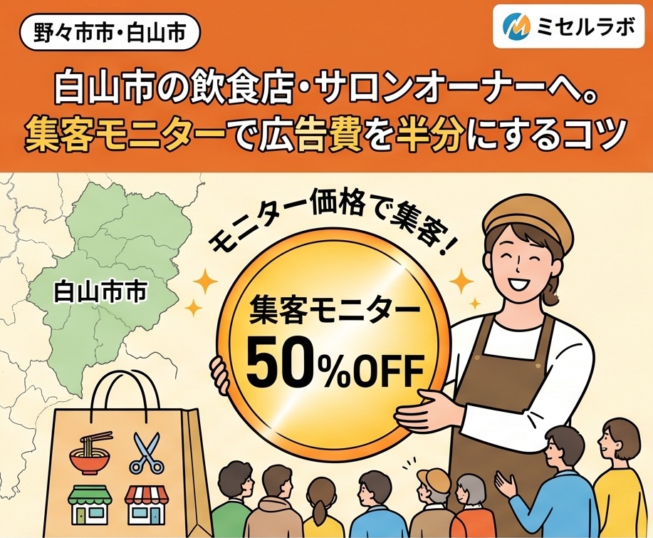 白山市の飲食店・サロンオーナーへ|集客モニターで広告費を半分にする方法【ミセルラボ】